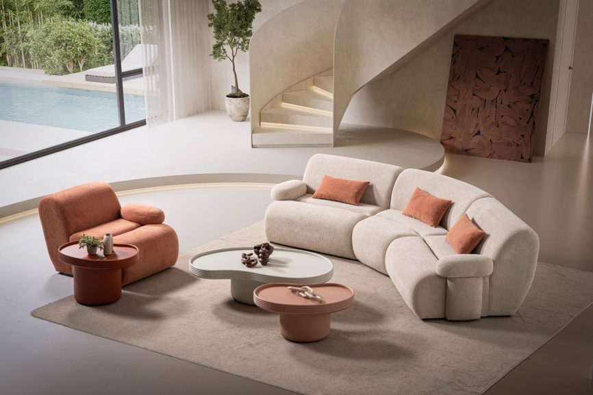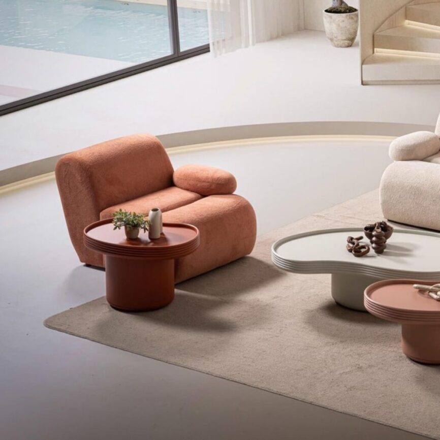 Lusia Yan Sehpa, modern tasarımıyla dikkat çeken şık bir tamamlayıcı mobilyadır. Ahşap görünümlü kıvrımlı ayakları ve çift katlı cam tablasıyla hem estetik hem de işlevsel bir kullanım sunar. Yuvarlak formu sayesinde mekâna yumuşak bir dokunuş katar, aynı zamanda Lusia Orta Sehpa ile birlikte kullanıldığında kusursuz bir uyum sağlar.