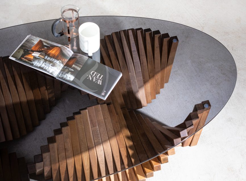 Aristo Yan Sehpa, sanatsal tasarımı ve heykelsi duruşuyla dikkat çeker. Üst üste binen ahşap blokların spiral bir formda yükselmesiyle oluşan gövde, mermer üst tabla ile birleşerek hem modern hem de sofistike bir görünüm sunar. Hem işlevsel hem de dekoratif bir parça olarak yaşam alanlarınıza karakter katar.