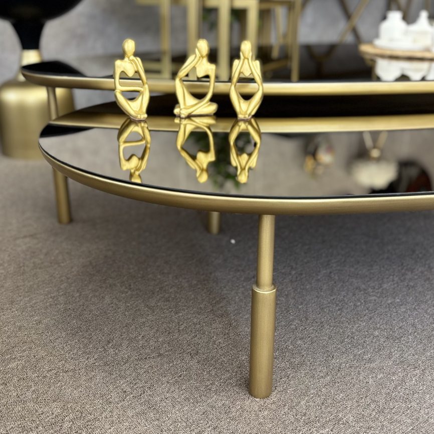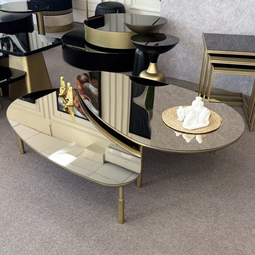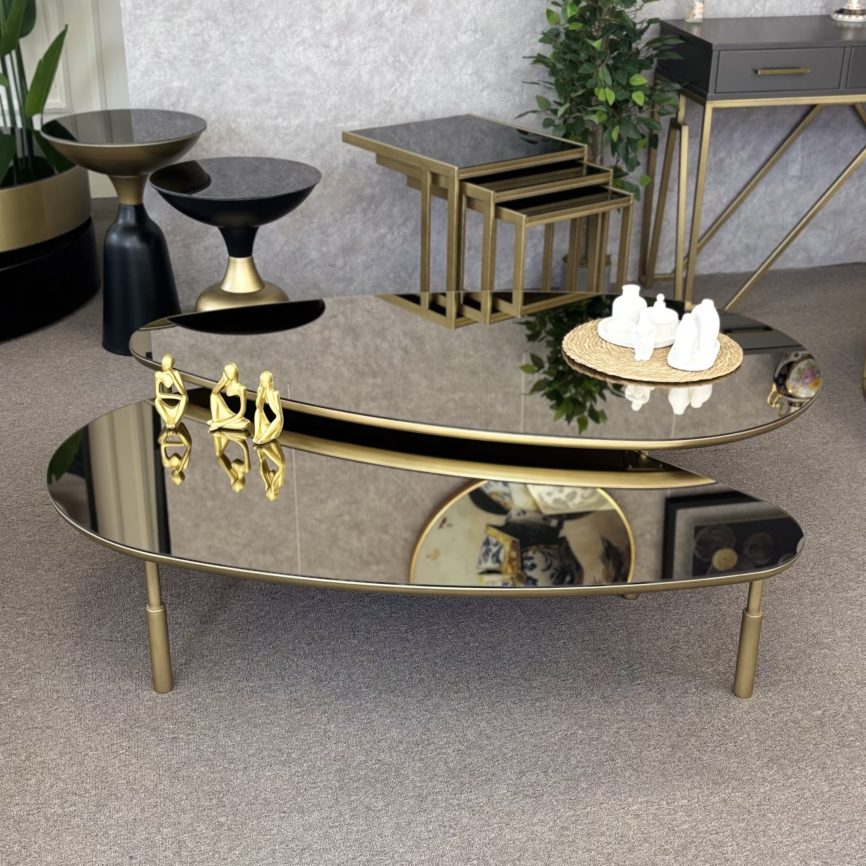 Metal ayakları ve renkli ayna/lake MDF üst tablası ile şık ve estetik bir görünüme sahip olan bu sehpa takımı, modern mekanlar için ideal bir seçenektir. İki farklı boyutta tasarlanmış parçaları dilerseniz birlikte, dilerseniz evinizin farklı alanlarında konumlandırabilirsiniz.