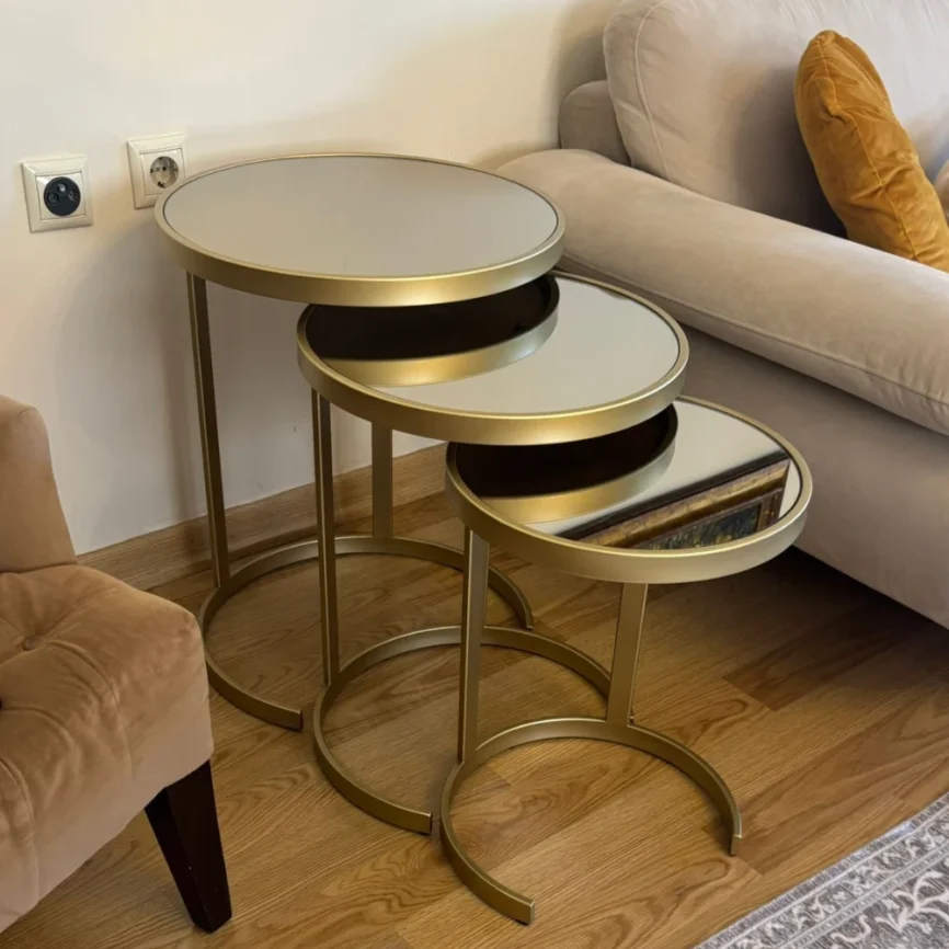 - Ölçüler: Her bir sehpa 44 cm genişlik x 46 cm derinliğe sahiptir. Yükseklik en yüksek sehpa için 60 cm’dir (Diğer sehpalar bu ölçünün altında olacak şekilde kademelidir).