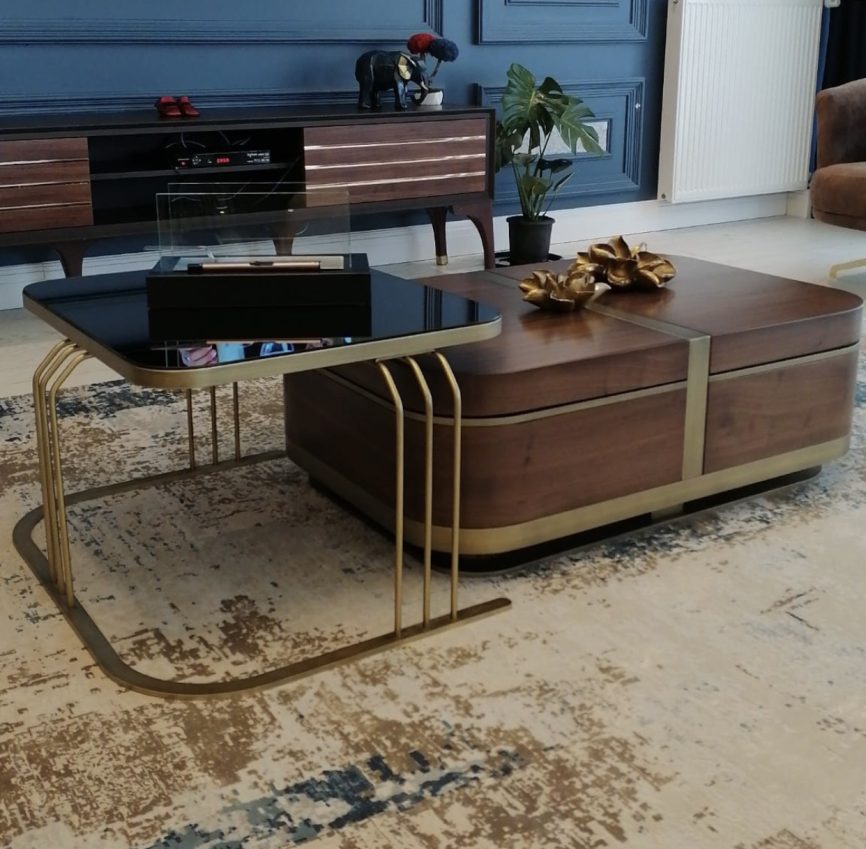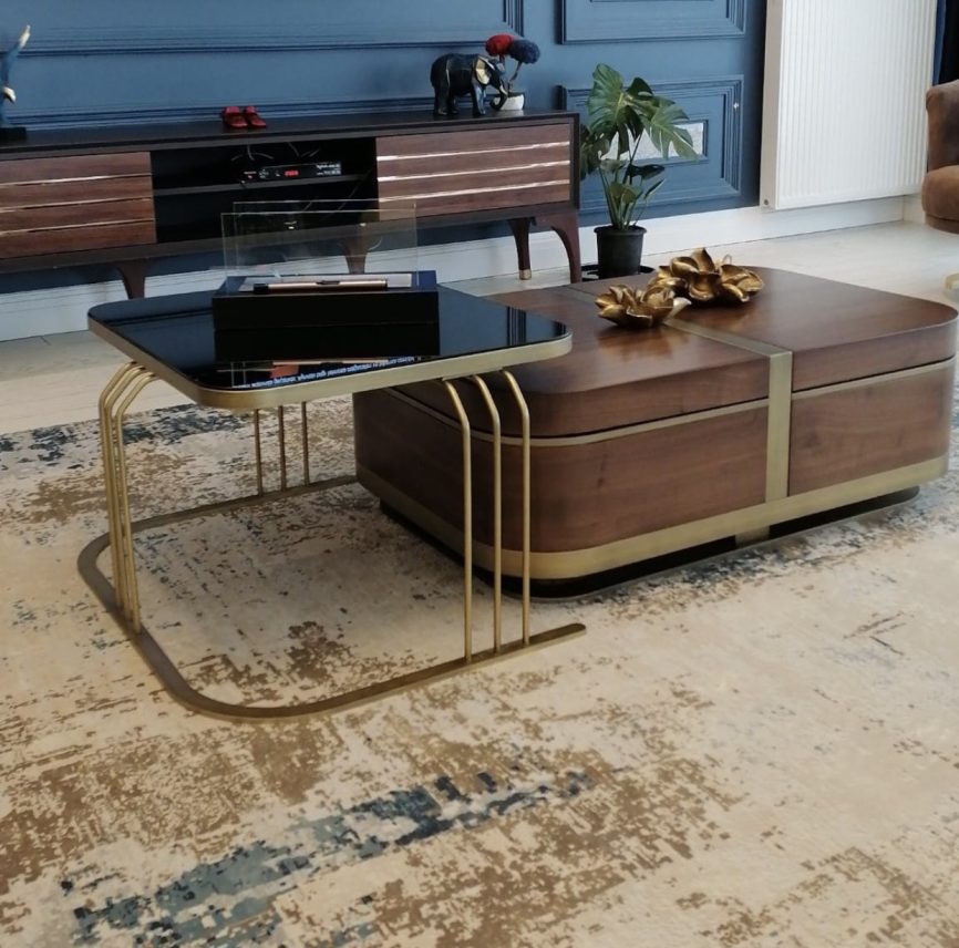 Altın detayları ve siyah mermer görünümlü MDF yüzeyi ile sofistike bir tasarım sunan Osla Orta Sehpa, dayanıklı yapısı ve estetik görünümü sayesinde yaşam alanlarınıza zarif bir dokunuş katar.