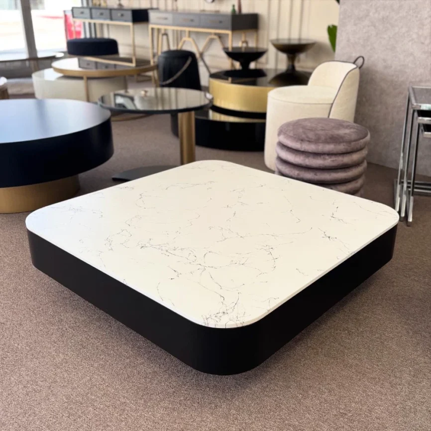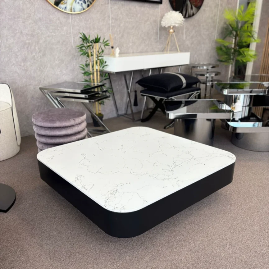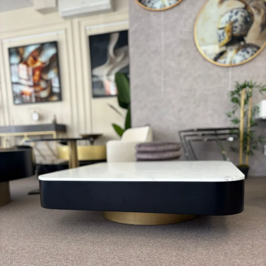 - Malzeme: Metal ayaklar, MDF üzeri cilalı üst tabla